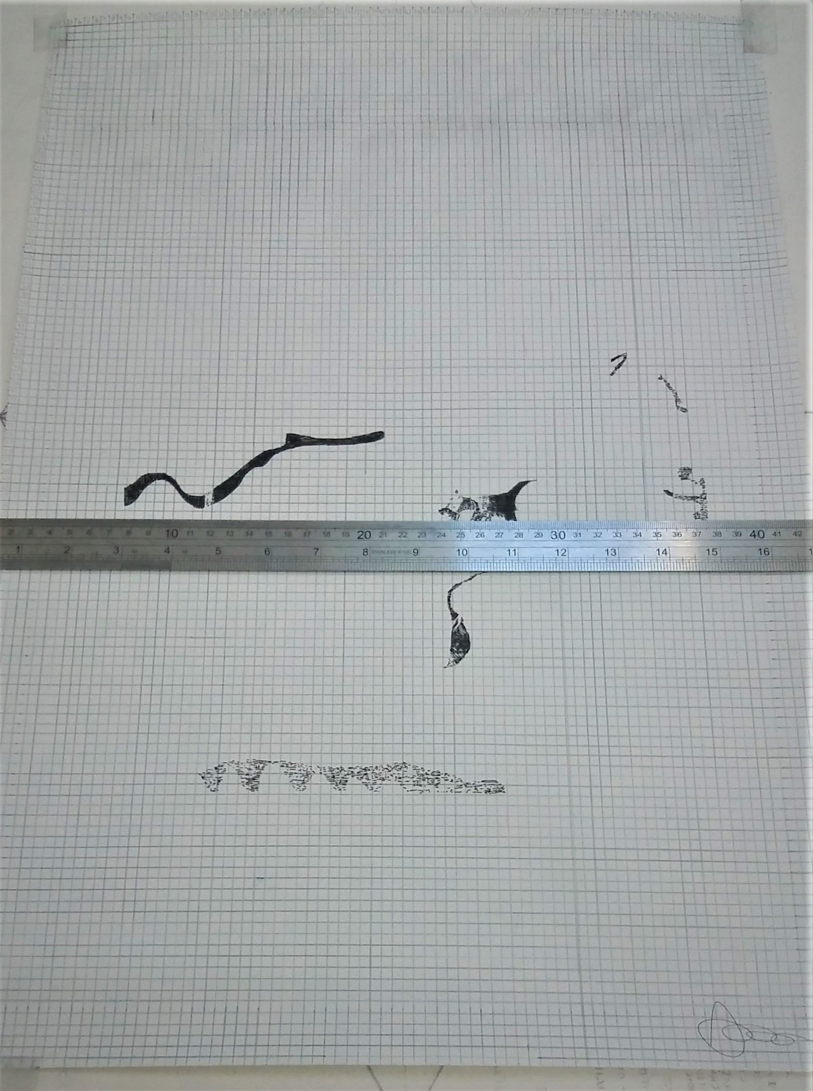 Gridded lines were added to the drawing (pictured left) as a means to map its content (pictured right).